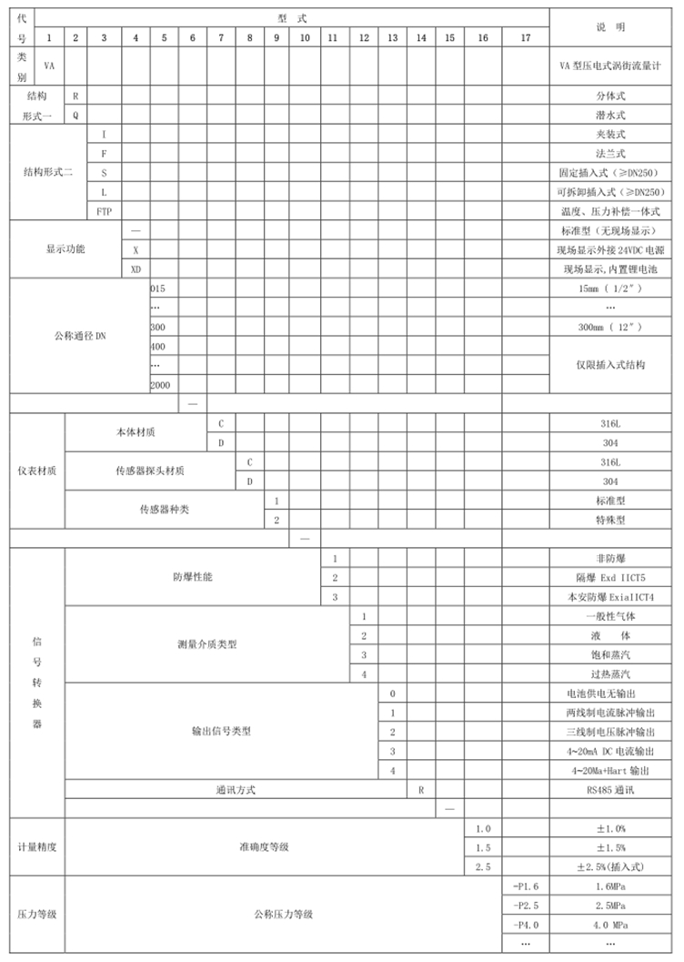 ■渦街流量計產(chǎn)品型號標(biāo)記