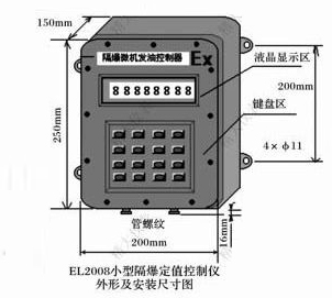 EL-2008隔爆批量控制器是一種新型的智能化隔爆定量控制儀表,它采用高性能微處理器,是一種真正的單片機系統(tǒng)。它采用背光式液晶顯示器顯示,不受光線的影響,結(jié)構(gòu)簡單,可靠性高,可直接安裝于防爆操作現(xiàn)場、油罐車等需要現(xiàn)場防爆定量計量的場合。與各種脈沖輸出流量計配套可對流量進行質(zhì)量或體積量的定量灌裝、計量和控制。該儀表可通過面板置入?yún)?shù),實施控制,具有斷電保護功能,是現(xiàn)代控制的理想單元儀 表。